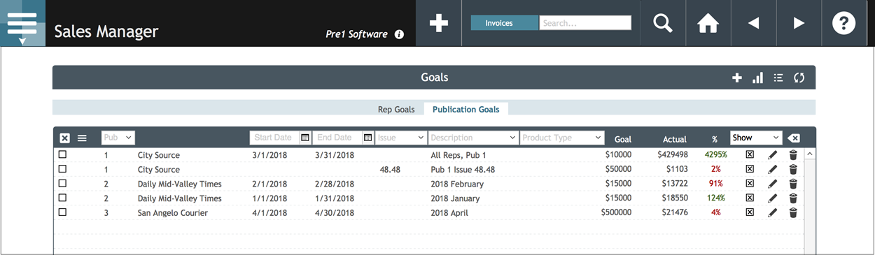 In addition to creating rep-specific sales goals, you may now create sales goals for a specific issue date of a publication. Great for special issues and supplements!